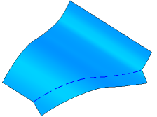 Той же поверхностью Продление граней выполняется без добавления новых граней — грани удлиняются за пределы открытых ребер по своей теоретической поверхности. Задайте положение боковых ребер продления. Если продляемая поверхность не является аналитической (см. приложение Параметрическое представление поверхности. Изопараметрические кривые), то построить участок продления Той же поверхностью невозможно. В этом случае в рамках данного способа построение выполняется По касательной, но без создания новых граней. |