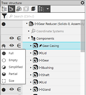 •You cannot apply a less detailed than applied load type to a component when its file is open in a separate tab. For example, you cannot load a component-part if its source file is open.