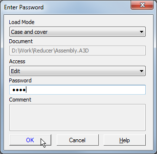 •open a protected assembly, open a subassembly of the assembly with a protected load mode using the command Edit component in window or Edit component in place,
