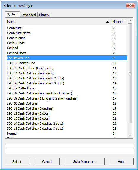 The name of the new style will appear in the style selection dialog box on the Embedded tab. Click Select to assign this style to the current curve.