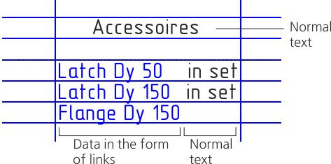 In the reports located in graphic documents, it is possible to display the contents of report rows in the form of links to the property values in the source document. Such links are created automatically if the Data as References option is enabled in the Parameter Panel when creating the report. They are displayed in the report with the color set for text links (see section Color of text elements).