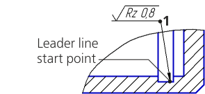 The leader landing direction can also be changed in the following ways. •To change the direction of landing to the opposite, move the cursor to the right/left (if the landing is horizontal) or up/down (if the landing is vertical). •To rotate a landing, scroll the mouse wheel while holding down the <Ctrl> key. When changing the direction of the landing, a switch is made between the options for placing the sign on the signage. When subsequent editing the signage of surface finish placed on the landing, it is possible to change the parameters of leader line using the Leader length and Leader angle fields (the angle of slope to the abscissa axis of the current coordinate system). |