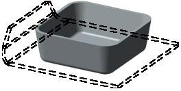 Fixed side is a portion of the base face the position of which will not change when you build a die form. The fixed portion of the face can be located inside or outside the die form profile. In the graphics area, a phantom arrow showing the construction direction starts in this portion of the face.