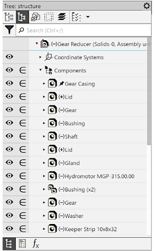 •Model Structure — display of the Build Tree with grouping of objects by types (see section Structural Representation of the Design Tree),