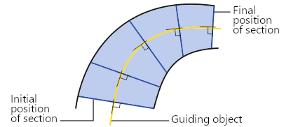 With the method of moving the section Along the line, the position of the section plane is defined by a guiding line. At the starting position of the section, its plane is perpendicular to the guiding line. When the section moves, the plane rotates so that it remains perpendicular to this line.