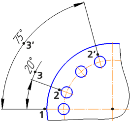 2.Set the first side of the angle that is common for the group of dimensions to be created; then create the second side of the angle to set the first dimension in the group. To do this, specify rectilinear objects or points in the graphic area that can be joined to create angle sides (see section Angle sides configuration).