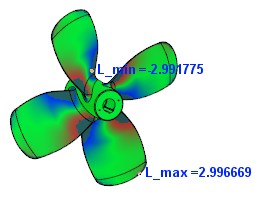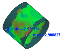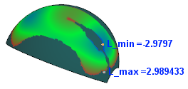 In the design process, you may need to determine whether it corresponds to solid (surface) polygonal object, built on its basis . To do this, deviation analysis of the body's edges (surfaces) from the edges of the original polygonal object is performed. Based on the results of the analysis, a color map of deviations is built, and the maximum and minimum deviation values are determined. Examples of displaying color deviation maps are provided in the figures.