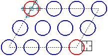 After generation of a parallelogram, it is impossible to delete automatically selected objects from the list or to add new objects to the list. To change the contents of a group of objects, release the Auto button. Names of automatically selected circles will be deleted from the Objects field. Indicate the required objects manually.