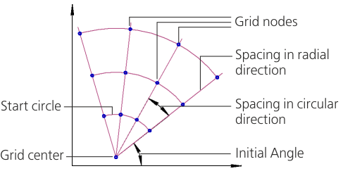 •the radius of the starting circle of the grid in the Initial Radius field;