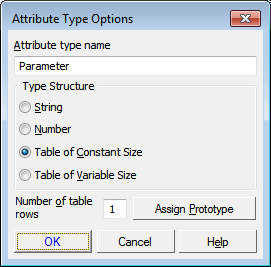 •To create a new attribute type in the current document, activate the view window that is titled Local document attribute types. If both windows display library attribute types (window titles contain paths to library files), press the Show Document