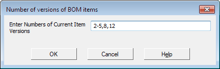 For example, if you enter the version numbers "2–5,8,12", then 6 new items will appear in the BOM, and their designation will differ from the source item designation by suffixes –02, –03, –04, –05, –08 and –12.
