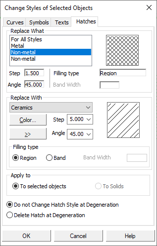 Do not Change Hatch Style at Degeneration Delete Hatch at Degeneration |