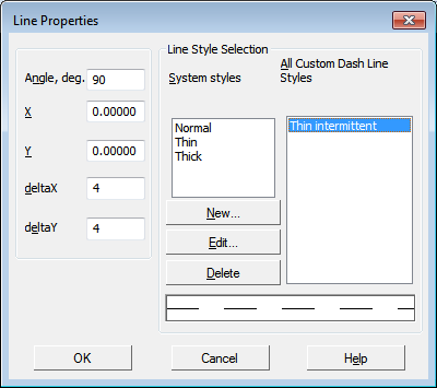 The list allows you to choose one of the system line styles (main, thin or thickened) as the line style. The list is formed by the user using the buttons New..., Edit... and Delete. It is available only within this hatch style. |