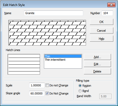 To finish creating/editing the hatch style, click OK. Click Cancel to discard all styles and close the dialog box.