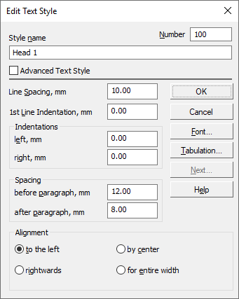 The dialog appears on the screen after pressing the Create or Edit button in In the dialog for using style library sets, as well as pressing the New... button in Text style selection dialog.