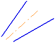 •If the With specifying borders method was selected, indicate two segments, then the first and second points of the centerline. A centerline on a bisector of angle formed by the indicated segments will be built (fig. a). If points are not indicated on the continuation of bisector, then the borders the centerline are projections of the indicated points onto this line.