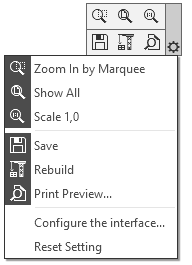 When the context bar appears on the screen, it displays only those buttons commands of which can be called at the moment. However, the setup menu list contains all the bar commands, both available and unavailable. Unavailable commands in the list are shown in light gray.