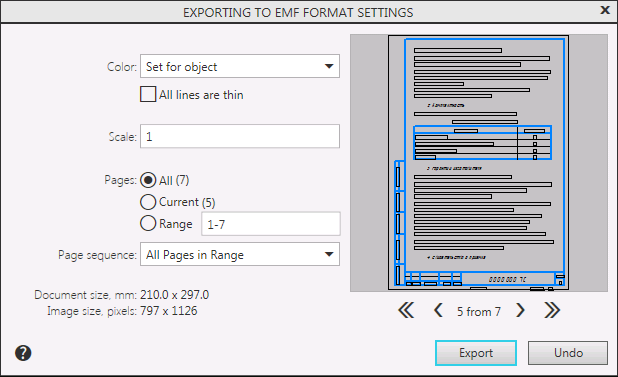 Writing to the EMF format follows the print filters. For example, the created file will contain only those objects of the KOMPAS document for which printing was enabled. |
