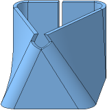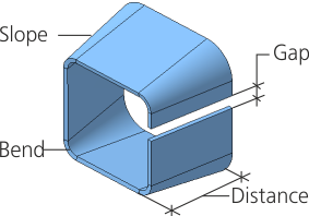 If the adjacent faces of the ruled surface are not joined smoothly, a bend of the specified radius is automatically created at the joint. When the adjacent bends intersect, an angle relief is automatically generated.