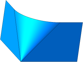 •If one of the guiding objects is a point, and the other is a single–segment curve, an edge or a sketch line, and also if both guiding curves are such curves, then the surface will have one face and two terminal edges: starting edge and ending edge.
