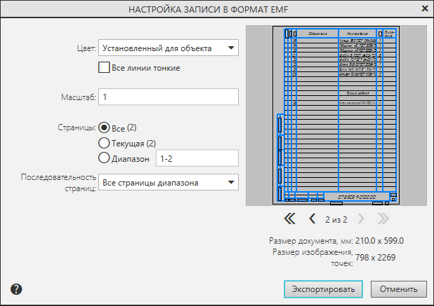 Диалог задания параметров записи в файл формата EMF (текстовый документ, спецификация) |