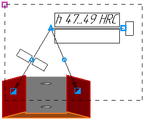 During creation or editing a designation, it is possible to add and delete branches of the leader line, to create kinks on the branchings. Work with branchings is performed using characteristic points.