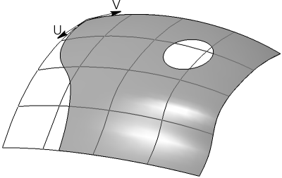 Surface is described in the model file as a geometrical locus of points whose coordinates are determined by functions of two parameters U and V:
