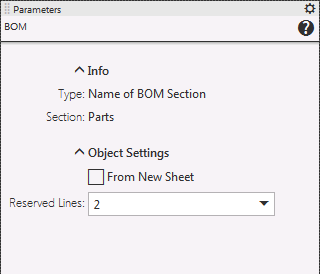 If an item is selected in the BOM table, its parameters are displayed in the Parameter Toolbar (see figure).