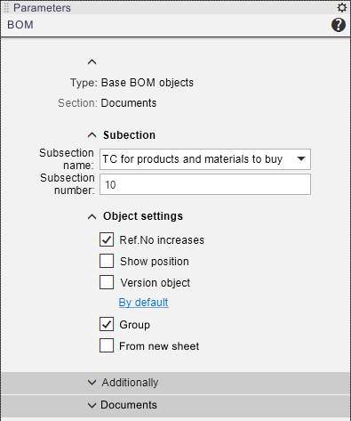Each parameter corresponds to a field or toggle switch (see section Entering and editing parameters of a BOM item). By changing the state of the toggle switches and the values in the fields, you can edit the parameters of the BOM item.