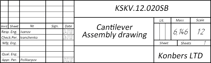 Let’s assume that the Designation and Name fields of the BOM title block contain the lines "KCKB.12.020" and "Bracket" accordingly.