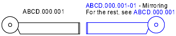 During creation of an associative drawing of the model containing the mirrored version, you can add an associative view of this version into the drawing. At the same time, captions of views of mirrored versions and the version which is the original for it are created in the drawing automatically.
