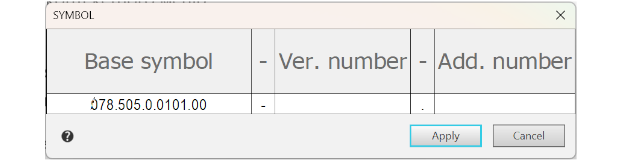 A simple designation may be entered or edited directly in the cell of the title block, whereas work with the compound designation is performed in a special dialog where a dedicated field if provided for each part of the designation.