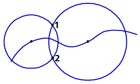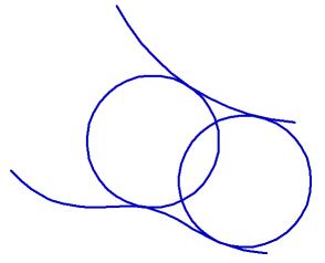 A circle which has tangency points with two specified curves is plotted using the Circle tangent to curves