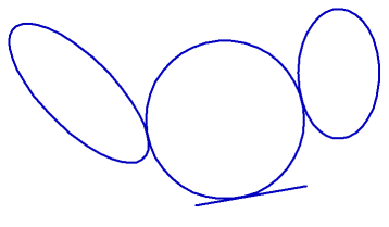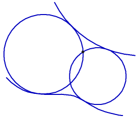 A circle which has tangency points with three specified curves is plotted using the A circle tangent to 3 curves