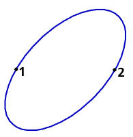 An example of an arc of an ellipse obtained by trimming a whole ellipse by points 1 and 2
