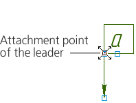 When you select an object with a leader, the object defining points and leaders are displayed (see the Figure). To edit the object, you can use the displacement and rotation points. The attachment point of the leader will remain connected to the object. The leader itself behaves exactly like a regular leader line when the start point of the landing is moved - it elongates, shortens or rotates.