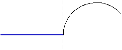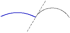 A subsequent chain arc can be constructed tangential to the normal drawn to the previous line segment at its end point. The point of tangency is the starting point of the arc. In the figure below, the main line shows the previous segment, the dashed line shows the normal to it at its end point, and the thin line shows the arc by normal.