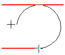 •Specify an arbitrary object, which should touch the arc, and then its end point. The radius/diameter of the arc is defined by two objects – the previous segment and the specified object. It cannot be changed.