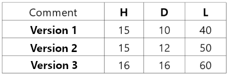 Thus, every row of the table starting from the second row contains a certain set of values of variables and a comment – the name of this set.
