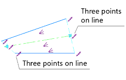 •If the segments are parallel or do not intersect and the intersection point of their extensions does not lie on one of the segments, then the Three Points on Line constraint is applied to the centerline at its terminal points (Fig. a).