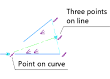 •If one segment intersects the extension of another segment, then in the point of their intersection the Point on Curve constraint is applied to the centerline, and in the opposite point the Three Points on Line constraint is applied (Fig. b).
