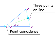•If the segments intersect, then the Point Coincidence constraint is imposed on the centerline in the point of intersection, and in the opposite point the Three Points on Line constraint is applied (Fig. c).