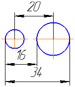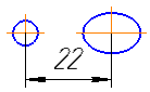 You can select centerline or segment with the Axis line style and use the object's separate point or specific point as a point. Dimension is set to the specified point or its symmetrical point relative to the centerline. If selection is made while the Selection of Main Object button is selected, centerline is specified first following by the point; otherwise, objects can be specified in any order. Dimension value is twice the distance between the centerline and the point. Diameter sign is automatically added to the dimension text. |