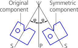 Let the plane of symmetry, relative to which the component is placed, is P, and the symmetry plane of the component is S. There are the straight intersection line of planes R and S and the angle φ between these planes.