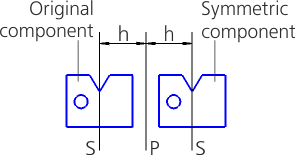 When specifying the plane/center of symmetry of the original component, the position of the component being added is determined as follows.