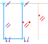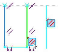 If an erroneous constraint is included in a group of several constraints of the same type, then the icon representing the group also turns red and is marked with the symbol “x” (for constraint groups, see section Viewing objects affected by constraint). The figures show the erroneous constraint Parallelism, which belongs to the group of constraints of the same type.
