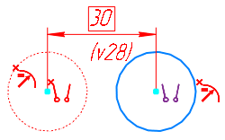 In the sketch editing mode, one can see which objects contain errors. Icons for erroneous constraints in the graphic area are colored red. A symbol "x" appears next to them. The dimensions labeled to the lost objects and the lost objects themselves also have a red color.
