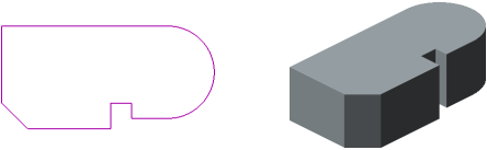 The extrusion element is formed by moving the section along a straight guideline to one or both sides at a given distance. For example, the following figure shows an element formed by extruding a sketch in a direction perpendicular to its plane.