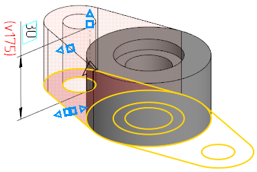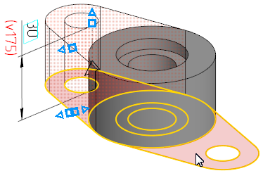 6.Specify one more sketch area as a section of the next extrusion element and enter the extrusion depth value 30.