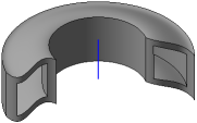 The rotation element is formed by rotating the section around the axis in one or both sides at a given angle. For example, the following figure shows an element formed by rotating a sketch 270° around an axis lying in its plane.